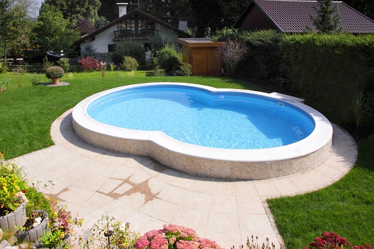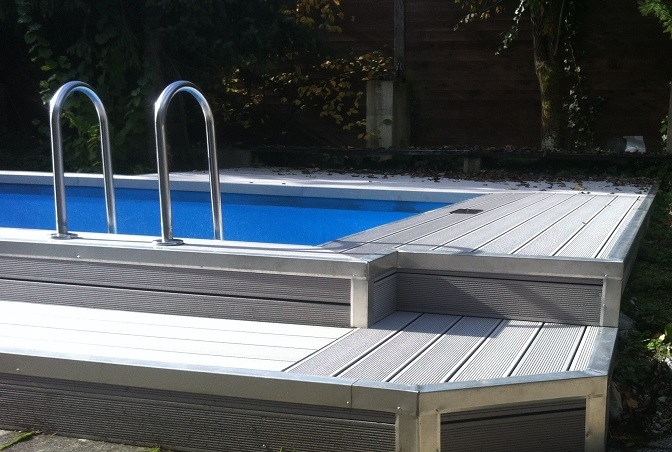 Versenkung des Pools mit Zugang. Jetzt passt der Pool in das Gesamtbild des Gartens und verschönert ihn, anstatt ihn zu verunstalten. September 2012